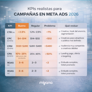 Si alguna vez has buscado en internet “cuáles son los KPIs ideales para Meta Ads”, seguramente te encontraste con tablas que prometen números perfectos: